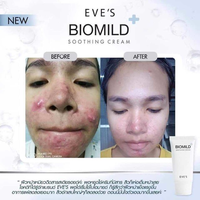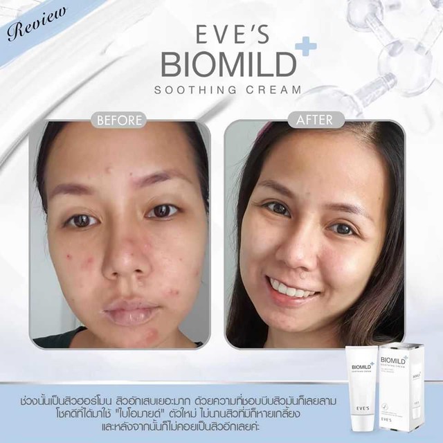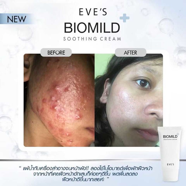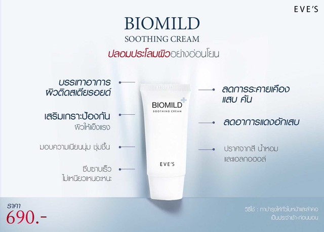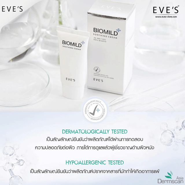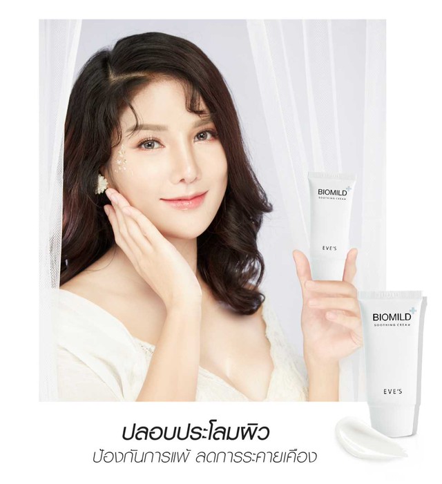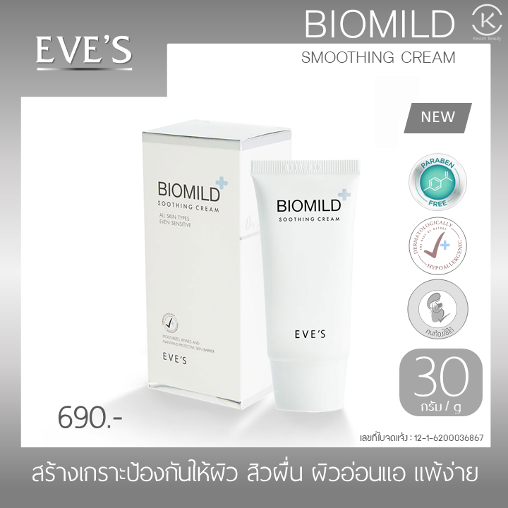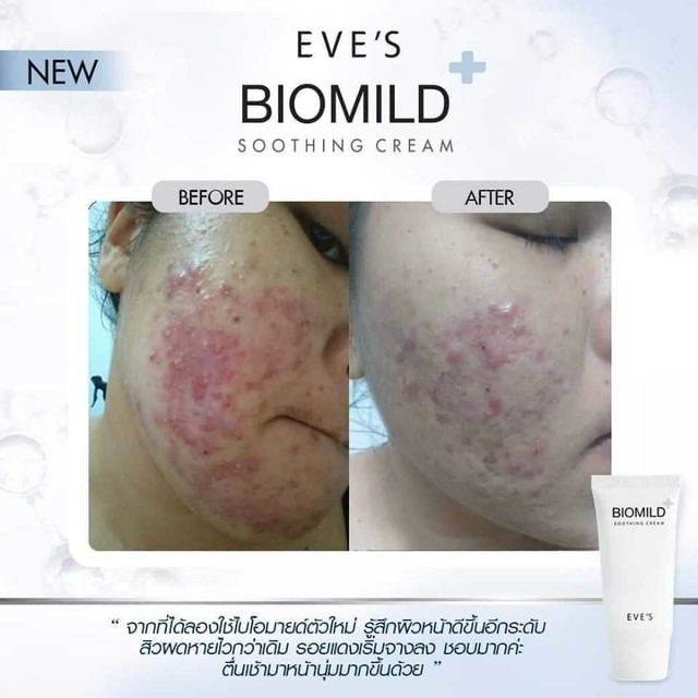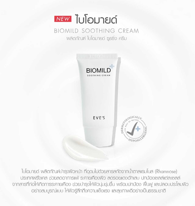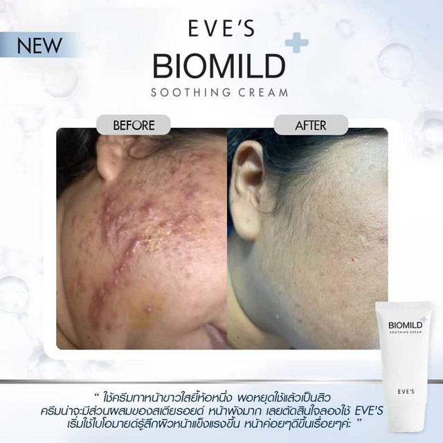 ครีม EVE'S รักษาสิว ผดผื่น ผิวติดสาร Biomild Soothing Cream ไบโอมายด์ อีฟส์ ครีมบำรุงผิวหน้า ผิวแพ้ง่าย เป็นสิวใช้ได้ สารสกัดจากธรรมชาติ ช่วยลดอาการผดผื่นและลดการระคายเคือง ปกป้องผิวจากการถูกทำลาย เพิ่มความชุ่มชื้นให้ผิว อ่อนโยนแม้ผิวบอบบาง เรียกง่ายๆว่ากระปุกเดียว ช่วยให้ผิวรู้สึกถึงความแข็งแรง