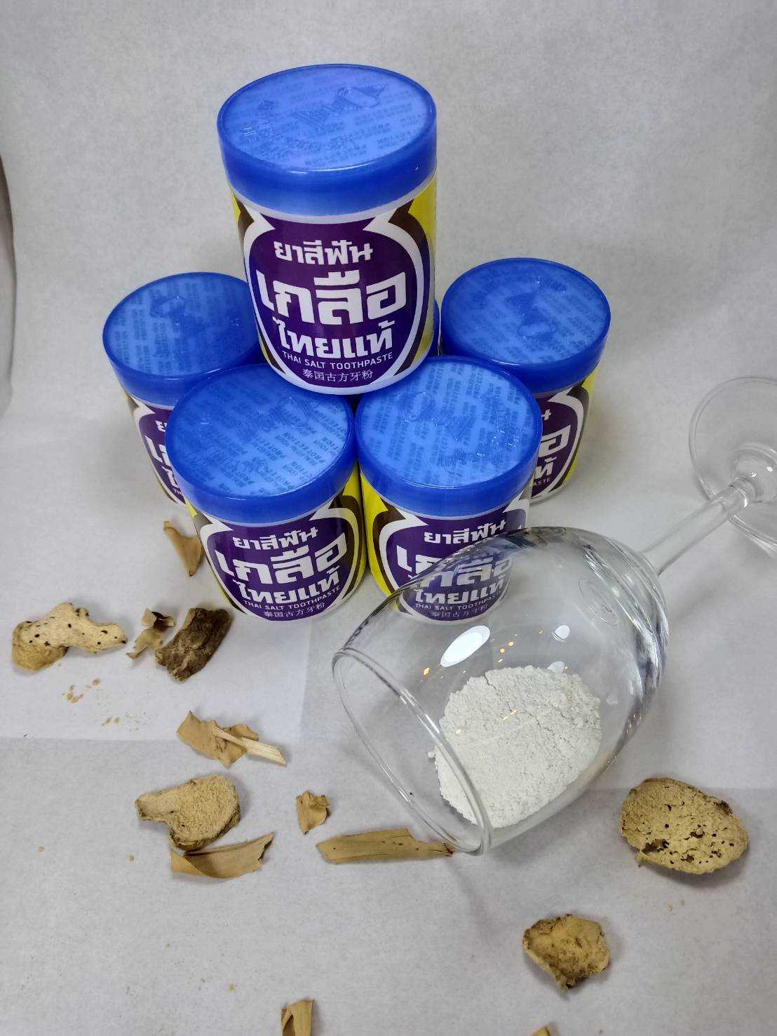 ยาสีฟันเกลือไทยแท้ เป็นยาสีฟันสมุนไพร ที่มีส่วนประกอบหลัก คือ เกลือ รากข่อย ลิ้นทะเล