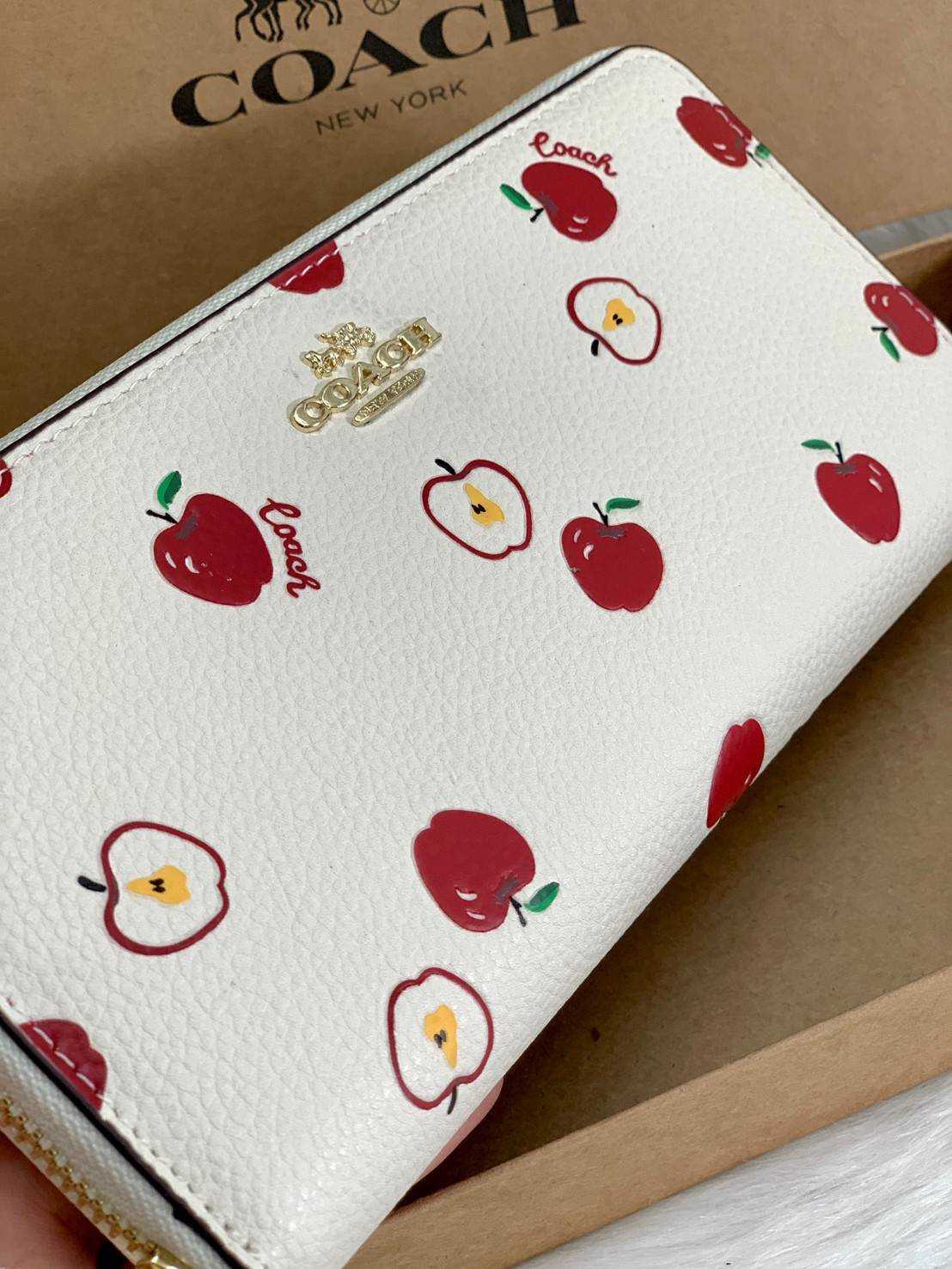 ใบสีขาว COACH LADIES FULL LEATHER APPLE PRINT LONG WALLET