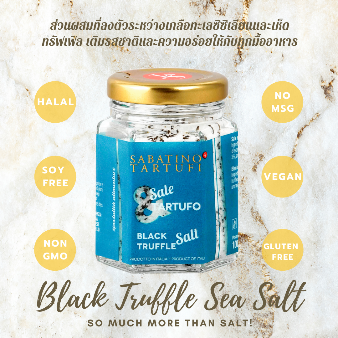 Truffle & Sea Salt เป็นส่วนผสมที่ลงตัวของเห็ดทรัฟเฟิลและเกลือทะเลซิซิลี สามารถใช้เครื่องปรุงนี้แทนเกลือปรุงรสอาหารจานใดก็ได้