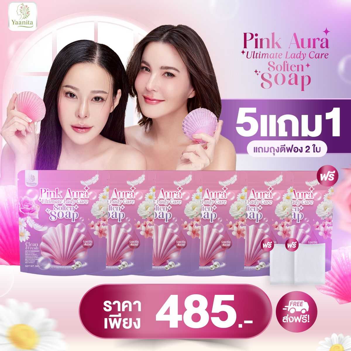 สบู่PinkAura 6 ก้อน แถมถุงตีฟอง 2 ใบ ทำความสะอาดจุดซ่อนเร้น