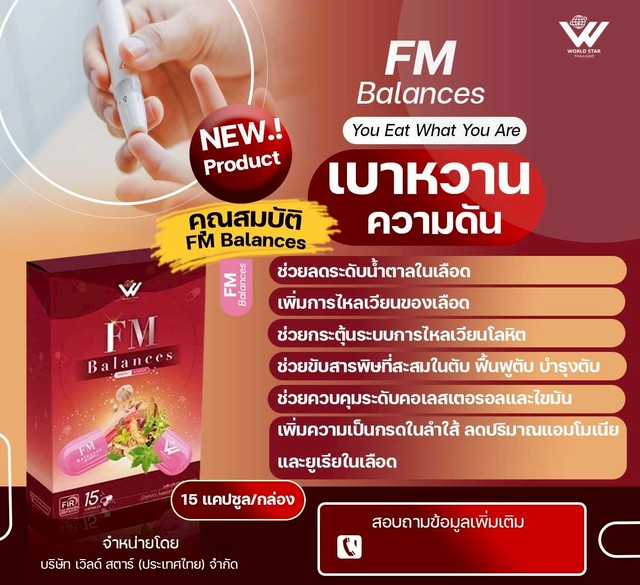 เอฟเอ็ม บาลานซ์ FM Blances ผลิตภัณท์เสริมอาหารเพื่อสุขภาพ หมดกังวลเรื่องน้ำตาลสูง