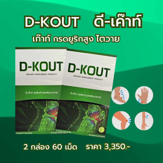 D-KOUT ดี-เค๊าท์ ผลิตภัณฑ์เสริมอาหารเพื่อสุขภาพ เก๊าท์ กรดยูริกสูง ไตวาย ไตเสื่อม