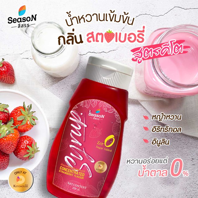 น้ำหวานเข้มข้นกลิ่นสตอเบอรี่ สูตรตีโต ตราสีสรร เราได้รังสรรขึ้นมาเพื่อชาวคีโตโดยเฉพาะ คัดสรรวัตถุดิบชั้นดี ให้ความหวานแต่ไม่ให้พลังงาน รสชาติกลมกล่อม หอมกลิ่นสตอเบอรี่ และไม่หวานติดลิ้น อร่อยลงตัวที่เดียวค่ะ