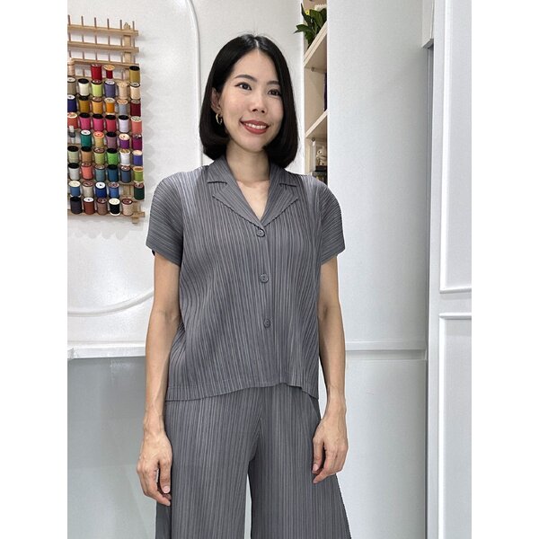 2MUAY รุ่น GJO3542 เสื้อพลีทคุณภาพ SHORT SLEEVE PLEATED SHIRT 10 สี FREE SIZE