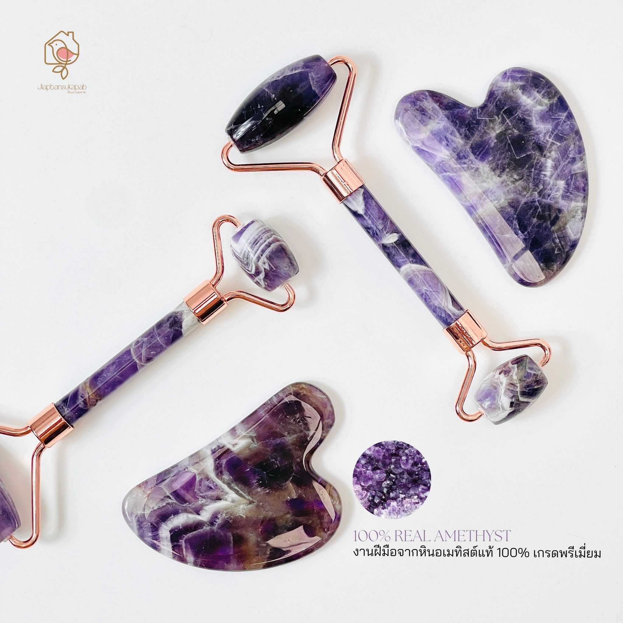 🌿Premium Grade ชุดนวดหน้าหินอเมทิสต์แท้ 100% ผลิตจากหินธรรมชาติ ไม่มีสารเคมี ไม่กระตุ้นให้เกิดสิวและสารตกค้าง