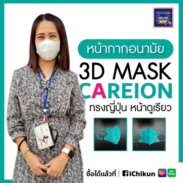 หน้ากากอนามัย ทรงญี่ปุ่น 3D MASK Careion แพ็ค 10 ชิ้น การันตีคุณภาพ