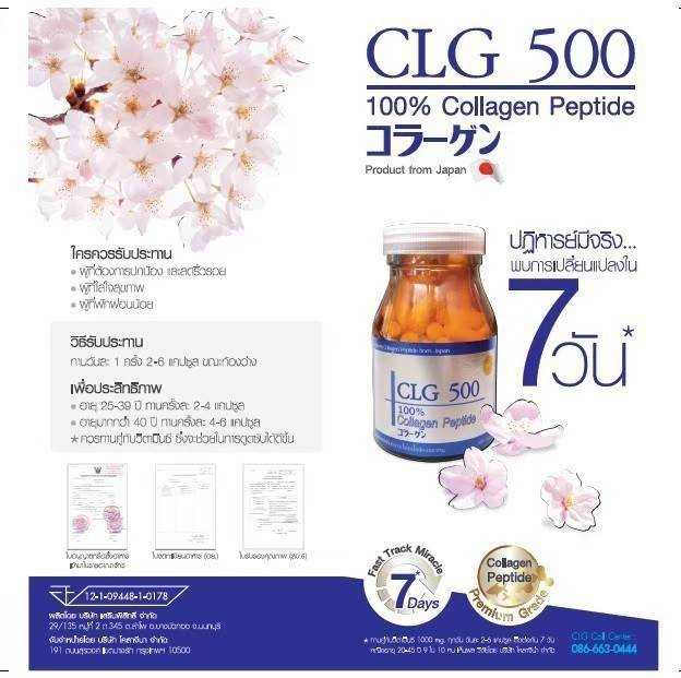 CLG 500 คอลลาเจนแท้ 100% จากหนังปลานิล ใช้วัตถุดิบชั้นนำเกรดพรีเมี่ยม (Wellnex Fish Collagen Peptide HDL-50SP) นำเข้าจากประเทศญี่ปุ่น สินค้าดี ราคาเอื้อมถึงได้ คุ้มค่ามากๆ มีจำหน่ายมานานกว่า 10 ปี ติดอันดับสินค้าขายดีที่ญี่ปุ่น