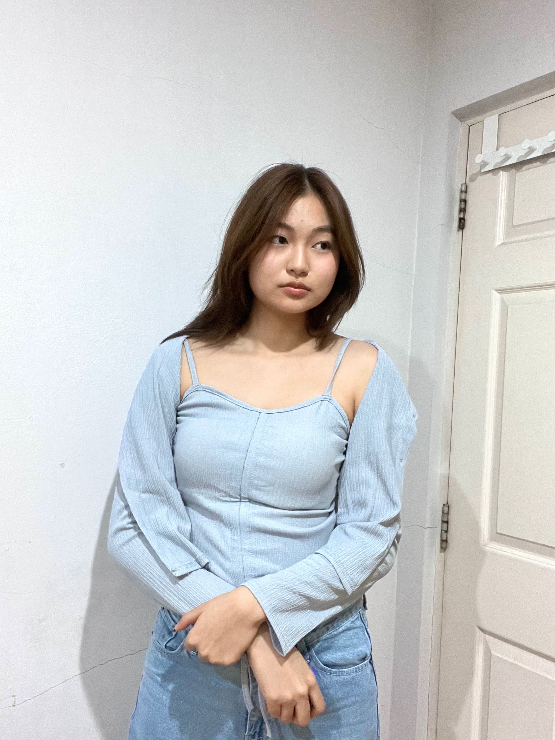 สายเดี่ยว+เสื้อคลุม(ชุดเซท) สีฟ้าอมเทา