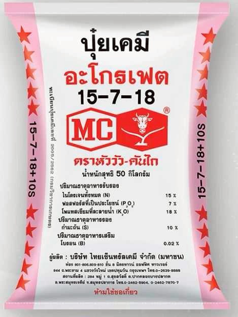 ปุ๋ยเคมีสูตร 15-7-18 ยี่ห้อหัววัว