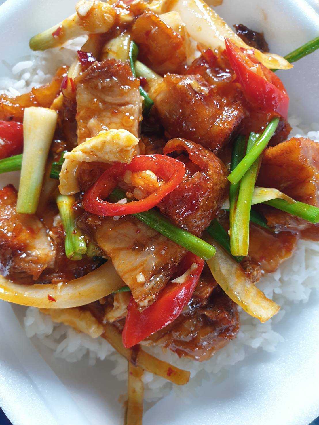 ผัดพริกเผาหมูกรอบ/หมึก/กุ้ง/ทะเล/เนื้อ