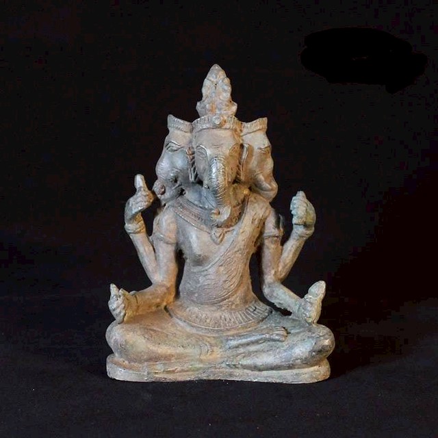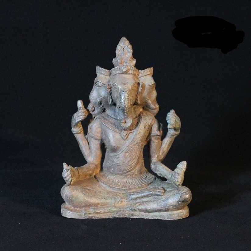 พระพิฆเนศ ปาง 3 เศียร แต่งสีเขียวสนิมเลียนแบบของเก่โบราณ ขนาด กว้าง 13 xสูง 18 cm