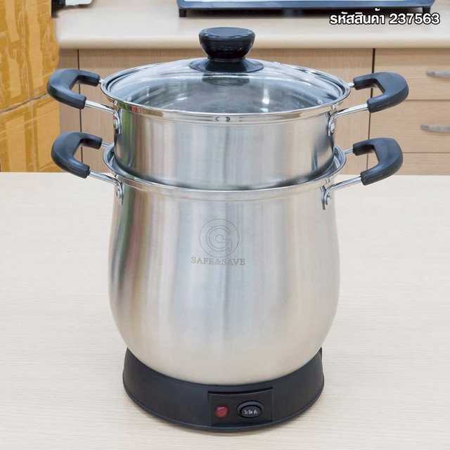 หม้อนึ่งข้าวเหนียวไฟฟ้า ความจุ 2 ลิตร สแตนเลสสตีล