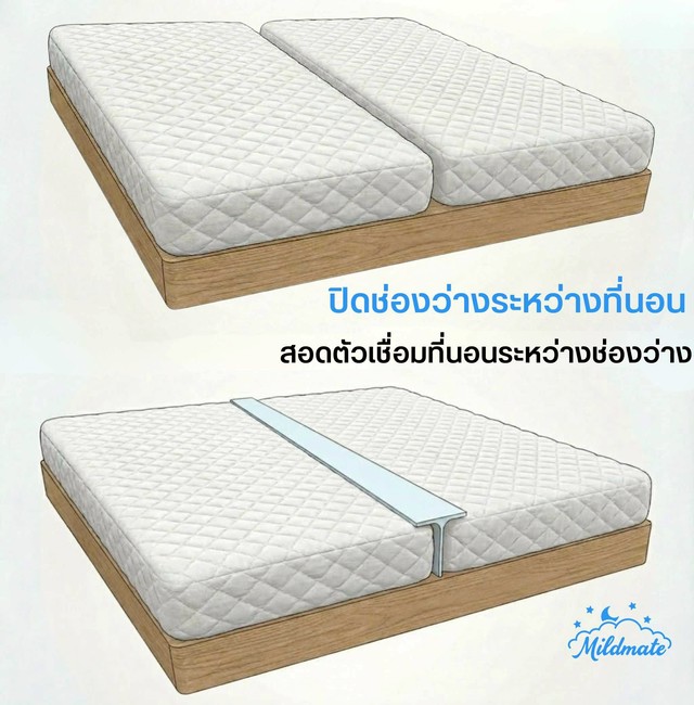 - ทีบาร์ปิดร่องที่นอน : ตัวช่วยอุดช่องว่างระหว่างเตียง 2 หลังให้ตื้นและเรียบเนียนเสมอกัน ถึงแม้ผ้าปูของเราจะผืนใหญ่คลุมมิด แต่ถ้าน้ำหนักตัวกดทับตรงรอยต่อก็อาจจะยังรู้สึกถึงร่องได้ การวางทีบาร์รองไว้ด้านล่างก่อนปูผ้าทับ จะช่วยเปลี่ยนเตียง 2 หลังให้กลายเป็นเตียงเดียวกันอย่างแท้จริง นอนทับตรงกลางได้สบาย ไม่เจ็บหลัง!