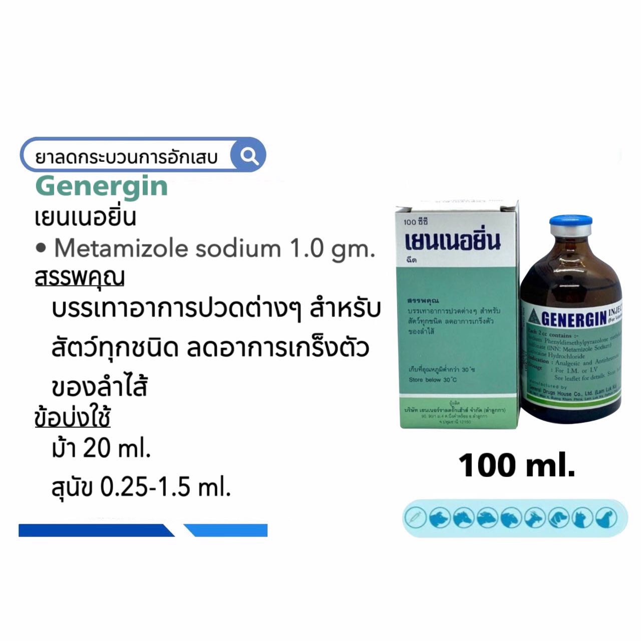 Genergin 20และ100 ml. เยนเนอร์ยิน ลดปวด ลดไข้
