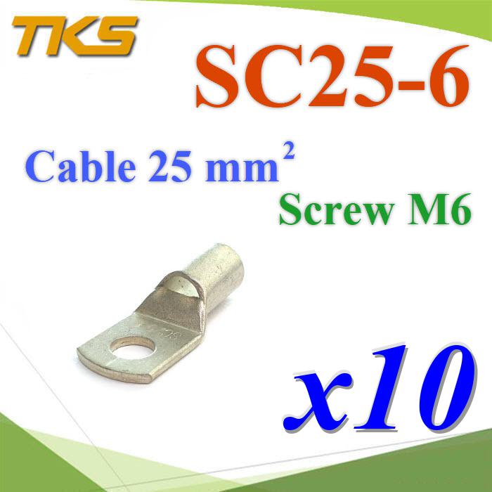หางปลาทรงยุโรปทองแดงชุบดีบุก สำหรับสายไฟ 25 Sq.mm. รูสกรู M6 รุ่น SC25-6x10
