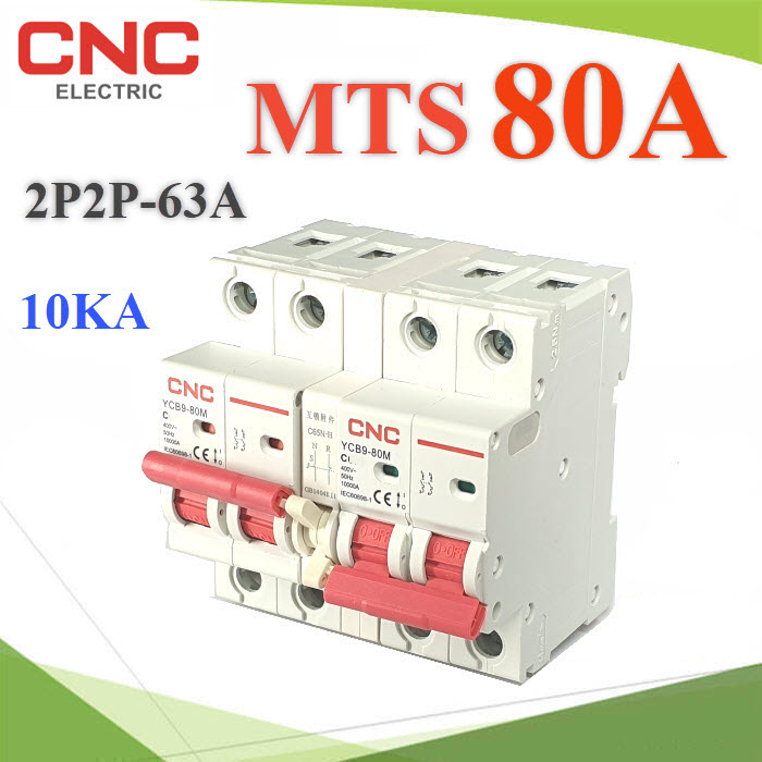 MTS 80A เบรกเกอร์สลับไฟ 2 ทาง CNC ไฟ AC MCB แบบ 2Pole ฝั่งซ้าย และ 2Pole ฝั่งขวา