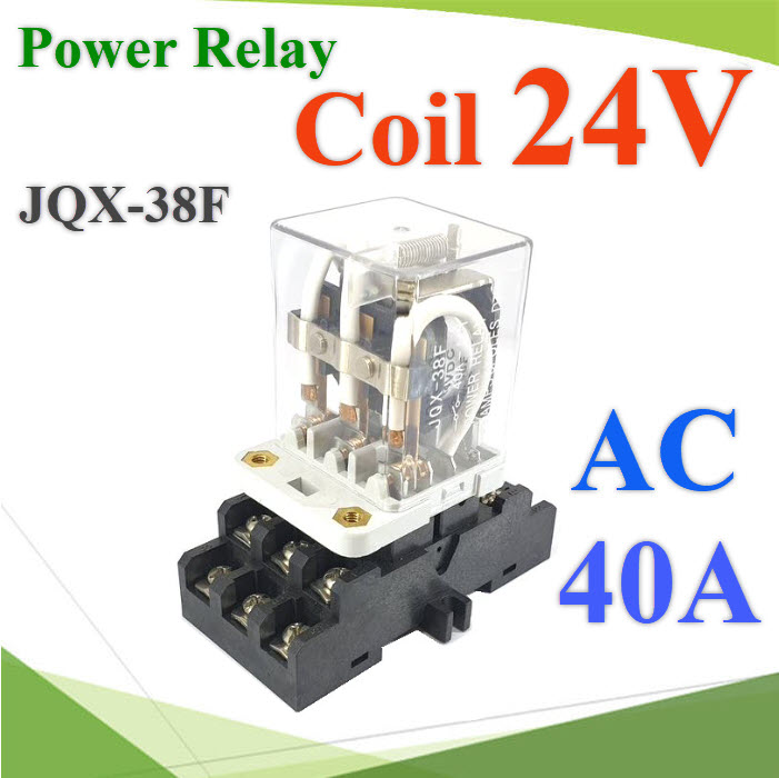 เพาเวอร์ รีเลย์ JQX-38F คอยล์ 24VDC ตัดต่อวงจรไฟฟ้า 40A AC ขา NO NC