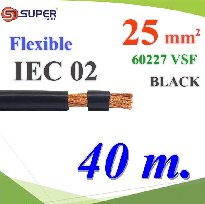 40 เมตร สายไฟแบตเตอรี่ VSF ขนาด 25 Sq.mm. ลวดทองแดงสายฝอย ฉนวนพีวีซี 60227 IEC02 สีดำ