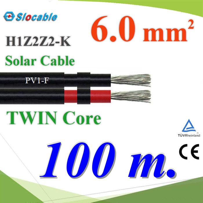 100 เมตร สายไฟ PV H1Z2Z2-K 2x6.0 Sq.mm. DC Solar Cable สายไฟโซลาร์เซลล์ เส้นคู่