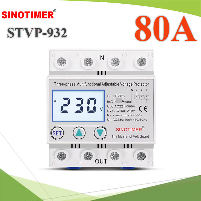 อุปกรณ์ป้องกัน แรงดันไฟฟ้าตก แรงดันไฟฟ้าเกิน แบบ 3เฟส STVP-932 Sinotimer 80A