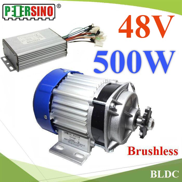 Brushless DC มอเตอร์ไร้แปลงถ่าน กำลังขับ 500W 48V สั่งผลิตเป็นพิเศษ เป็นมอเตอร์เกียร์ ที่ทดรอบแล้ว สามารถนำไปติดตั้งเพื่อขับปั๊มน้ำ ปั๊มชักส่งน้ำได้ไกลเป็นกิโลเมตร หรือไปขับใบพัดเติมอากาศ หรือดัดแปลงมอเตอร์ ใช้งานได้หลายรูปแบบ สามารถทำงานได้ทั้งกลางวัน และกลางคืน กรณีใช้แบตเตอรี่ หรือทำงานเฉพาะตอนกลางวันสำหรับระบบโซลาร์เซลล์ มอเตอร์ BLDC เป็นชนิด Brushless DC แบบไม่มีแปรงถ่าน ความเร็วรอบ ภายในมอเตอร์บลัสเลส ขณะไมมีโหลด ประมาณ 2800 RPM ด้านหน้าแกนมอเตอร์ มีเกียร์ทดรอบแบบซันเกียร์ ทดรอบเฟือง ได้รอบสูงสุดประมาณ 500 รอบต่อนาที ตัวเรือนมอเตอร์ทำด้วยอลูมิเนียม มีครีบระบายความร้อนรอบตัวเรือน สามารถใช้งานได้นานกว่ามอเตอร์ DC ทั่วไป ด้านหลังมอเตอร์ มีพัดลม ระบายความร้อน ติดตั้งมาสำเร็จรูปกับมอเตอร์ การขับเคลื่อนมอเตอร์ มอเตอร์ BLDC (Brushless DC) จะมีกล่องควบคุมในการหมุน คอนโทรลสนามแม่เหล็ก S-N ดูดและผลักกัน สลับกันไปในแต่ละจังหวะ ทำให้มอเตอร์หมุน เร็วช้าได้ตามต้องการ