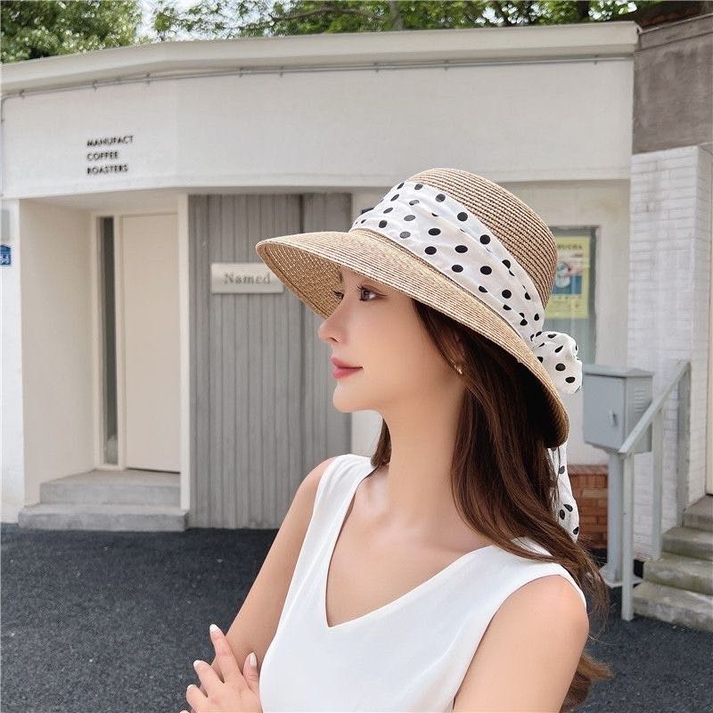หมวกสานแต่งโบว์ลายจุดน่ารัก อัพลุคให้สาวๆ ดูดีขึ้น งานเกาหลี ไฮโซ