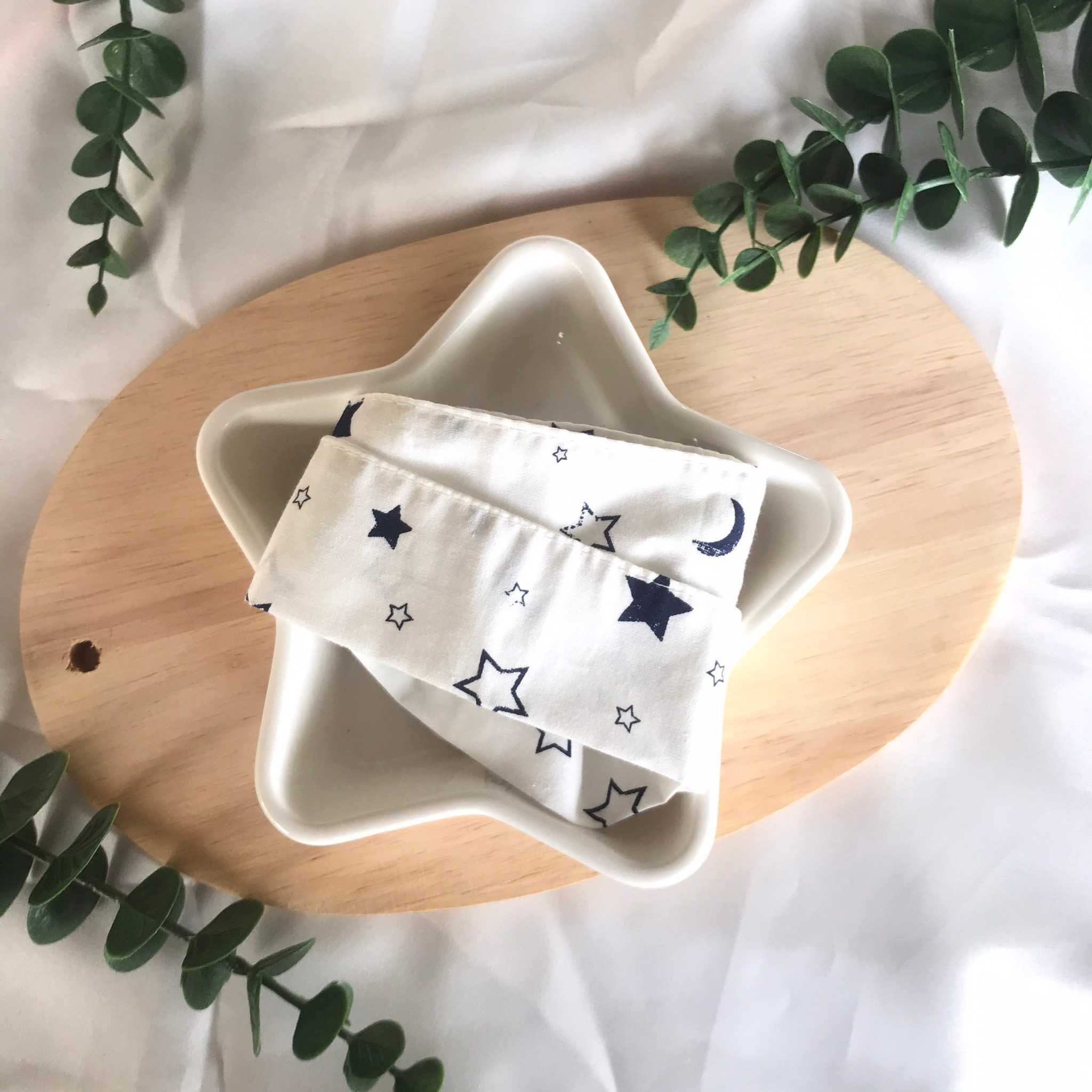 076-โบว์ผ้าผูกผมสีขาวลายดาวกับพระจันทร์