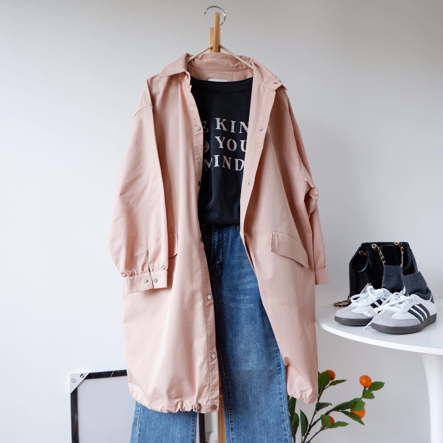 𝑫𝒆𝒕𝒂𝒊𝒍𝒔: ม็อดส์โค้ทผ้าคอตตอน-โพลี สีชมพูนู้ด ไม่มีซับ น้ำหนักเบา กันลมกันหนาว**มีรอยจางๆ