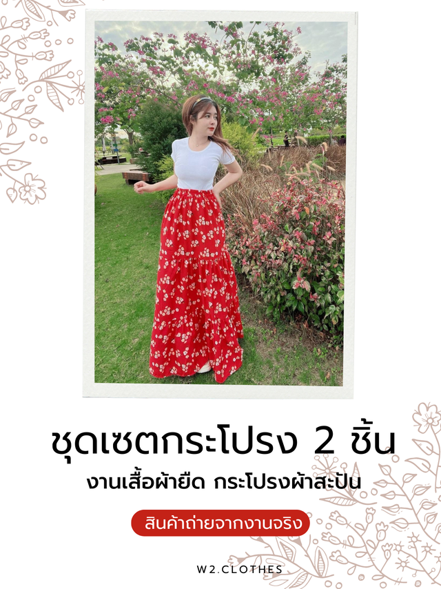 เสื้อยืดผ้านุ่ม ยืดเยอะ ใส่สบายนุ่มผิว + กระโปรง ทรงสวิง เย็บแบบต่อชาย ใช้ผ้าเยอะ เพื่อความพริ้ว สวยมาก ซัมเมอร์นี้ต้องมี