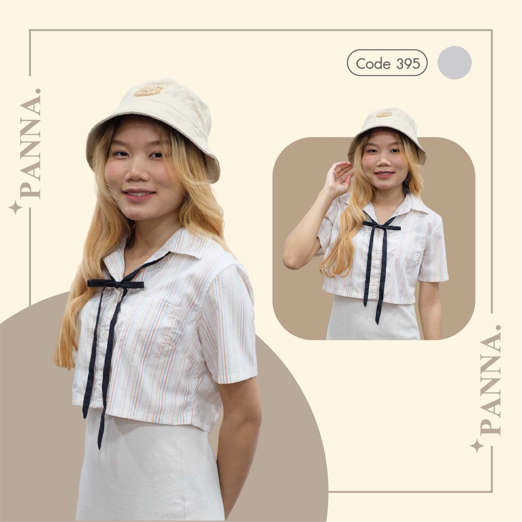 เสื้อเชิ้ตครอป มีกระเป๋าอกซ้าย ลายริ้วไล่สี