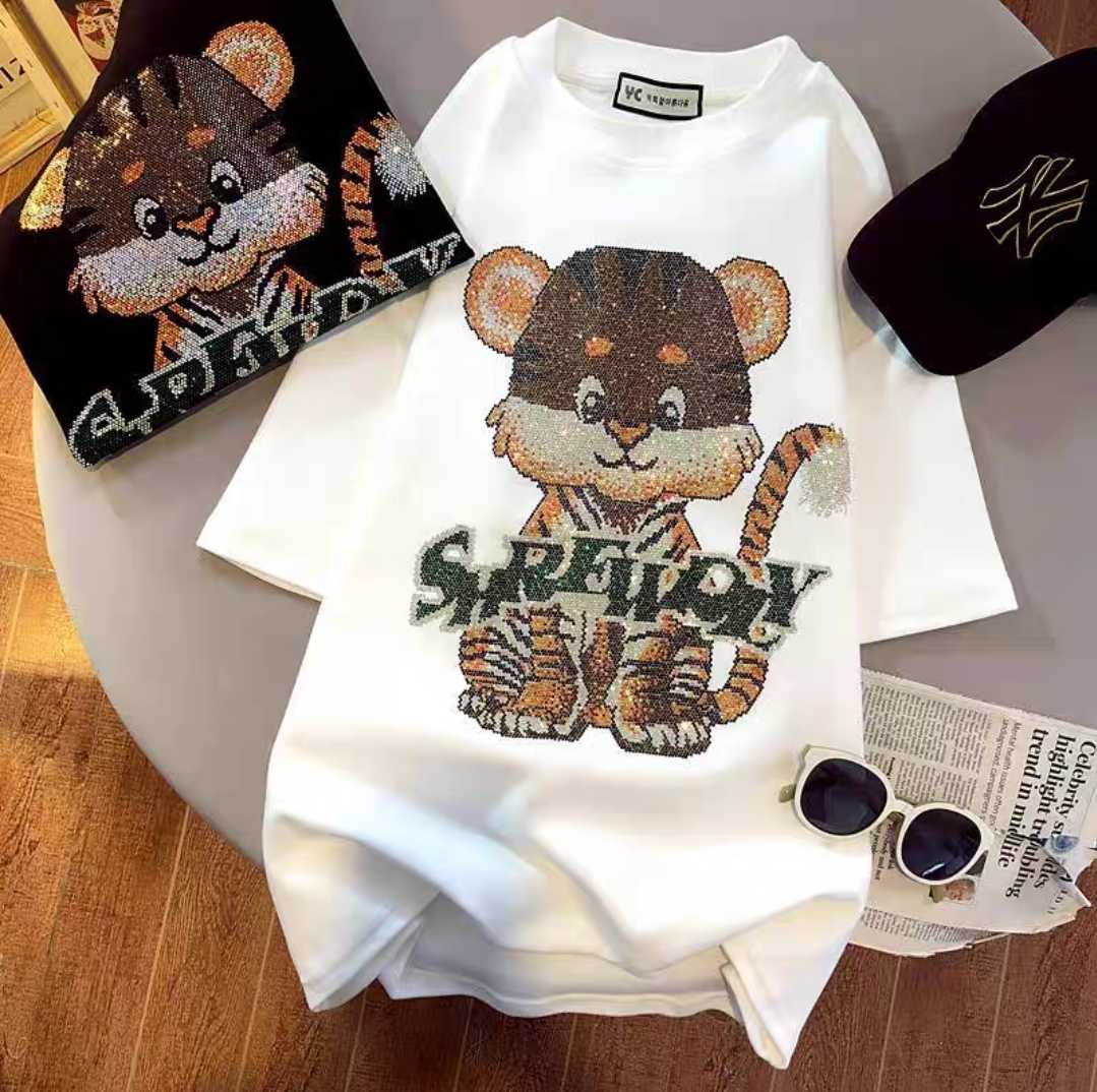 👚เปิดพรี เสื้อยืด เนื้อคอตตอนผสม งานรีดเพชร ลายน้องเสือ