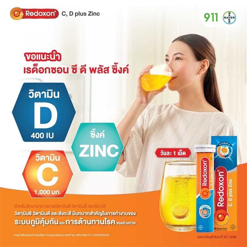เรด็อกซอน Redoxon Vitamin C D +Zinc วิตามินเม็ดฟู่ 15เม็ด