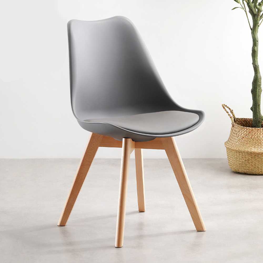 เก้าอี้เบาะหนัง ขาไม้สีบีช Tulip Chair Mid-Century PP Modern Chair With Beech Wood Legs And PU Soft Padded