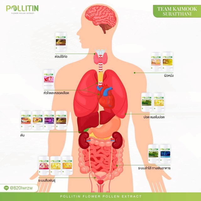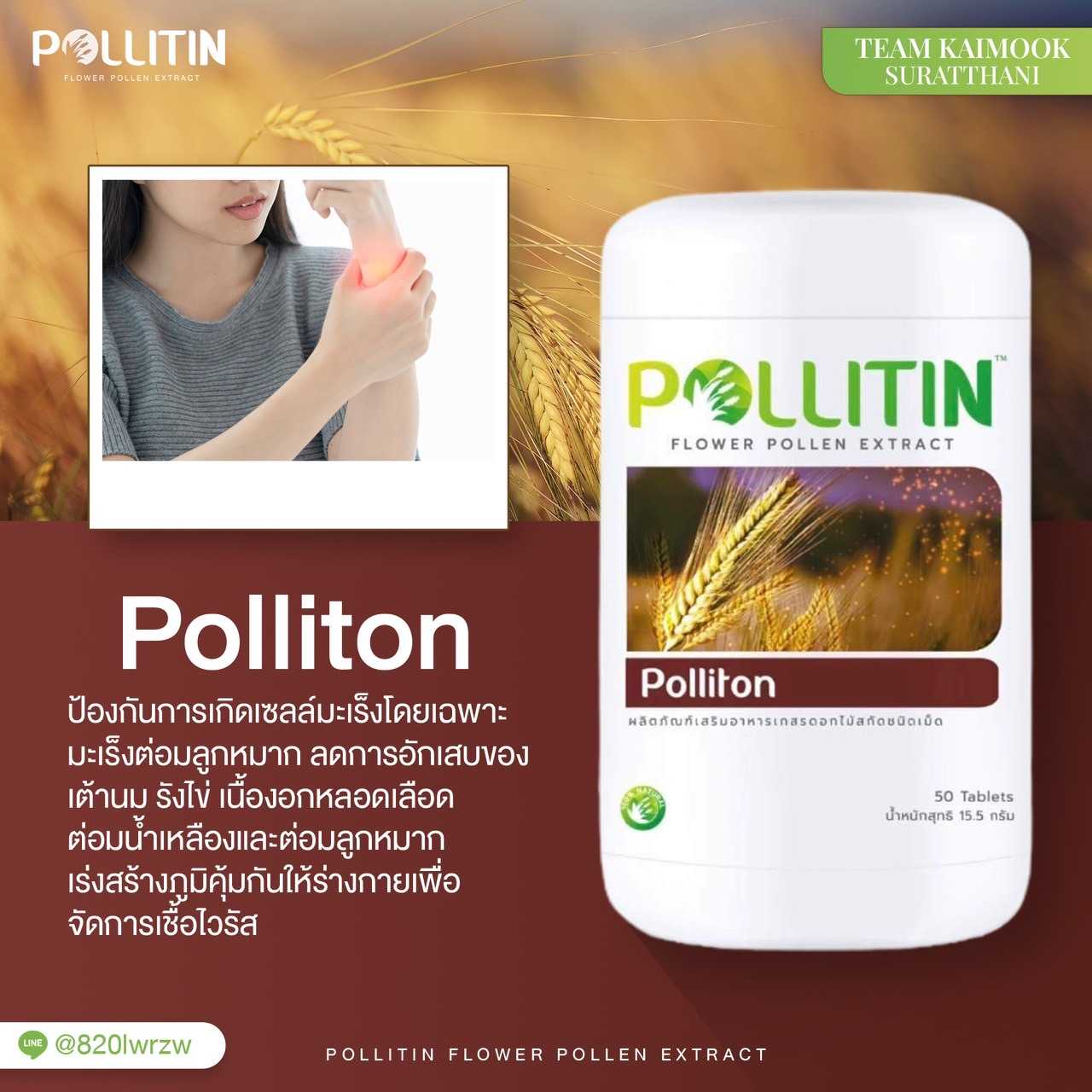 Polliton พอลลิตัน มีสารสกัดละอองเกสรดอกไม้ G60 และสารสกัดละอองเกสรดอกไม้ GBX มีสารพฤษเคมีและสารอาหารที่จำเป็นต่อร่างกาย เปี่ยมไปด้วย วิตามิน และแร่ธาตุมากกว่า 250 ชนิด - พอลลิติน