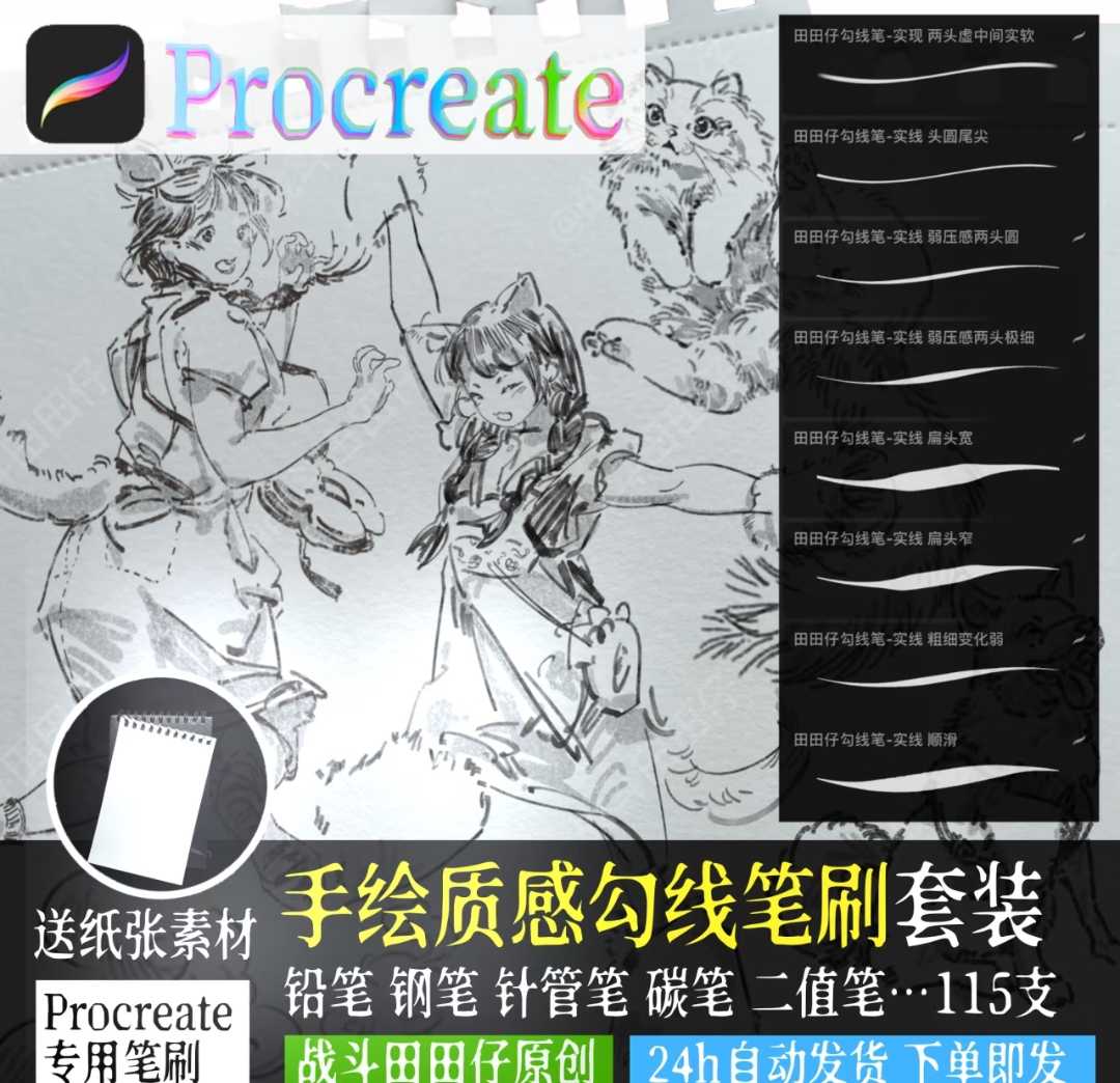 战斗田田仔【procreate软件专用】 勾线笔刷