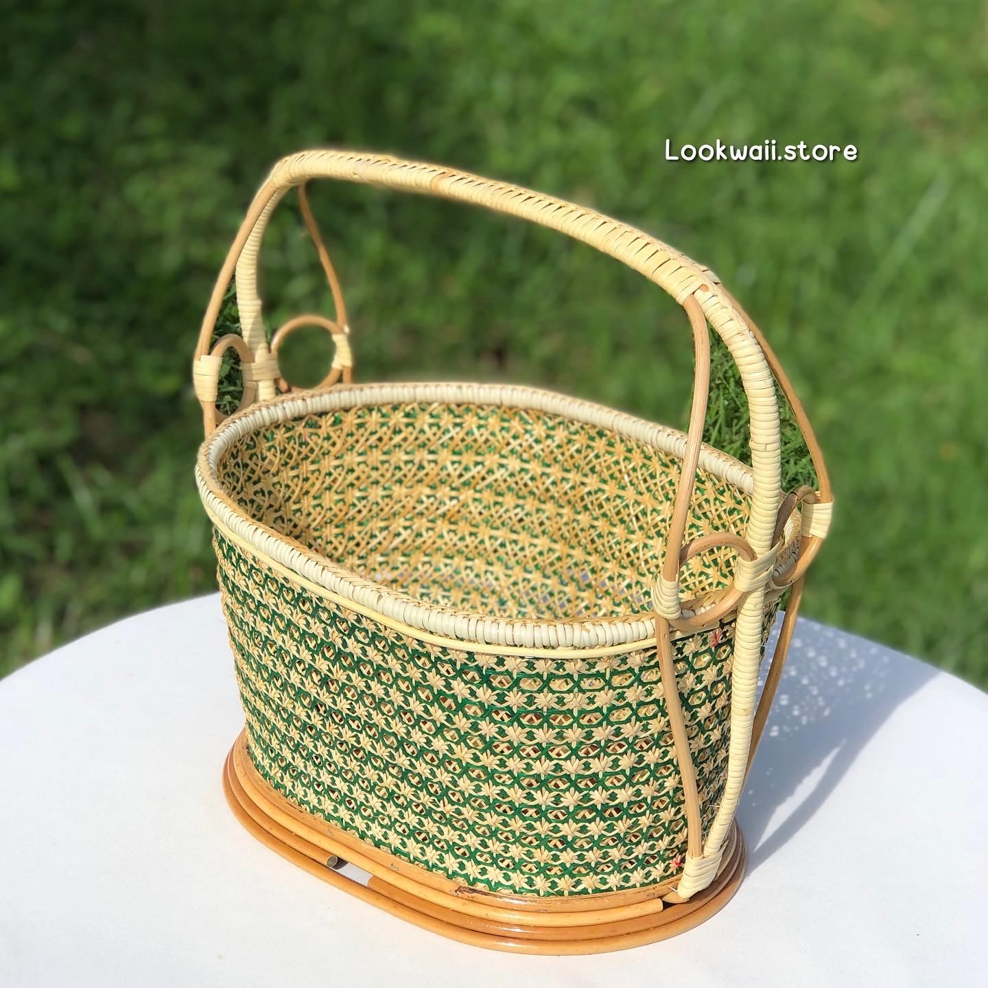 • ตะกร้าหวายลายดอกพิกุลสีเขียว •🍃