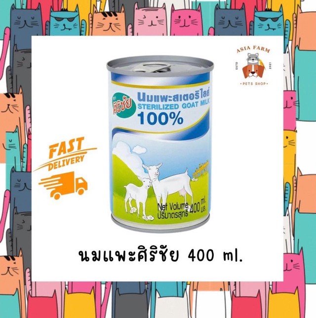 ศิริชัย นมแพะสเตอร์รีไรส์ 100% สามารถให้ลูกสัตว์กินได้ตั้งแต่ 5 วันแรก ขนาด 400 ml x 6 กระป๋อง