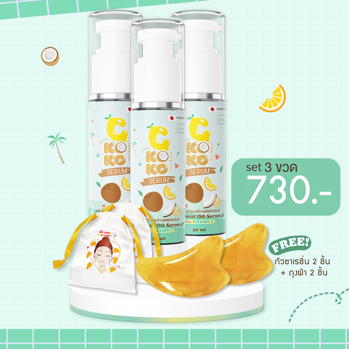 เซรั่มนวดกัวซา ซีโคโค่ CKOKO Coconut Oil Serum Plus Vitamin C 50ml. 3 ขวด (แถมกัวซาเรซิ่น 2 ชิ้น)