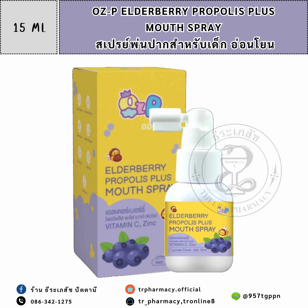 OZ-P Elderberry Propolis Plus Mouth Spray 15 ml. สเปรย์พ่นปากสำหรับเด็ก อ่อนโยน