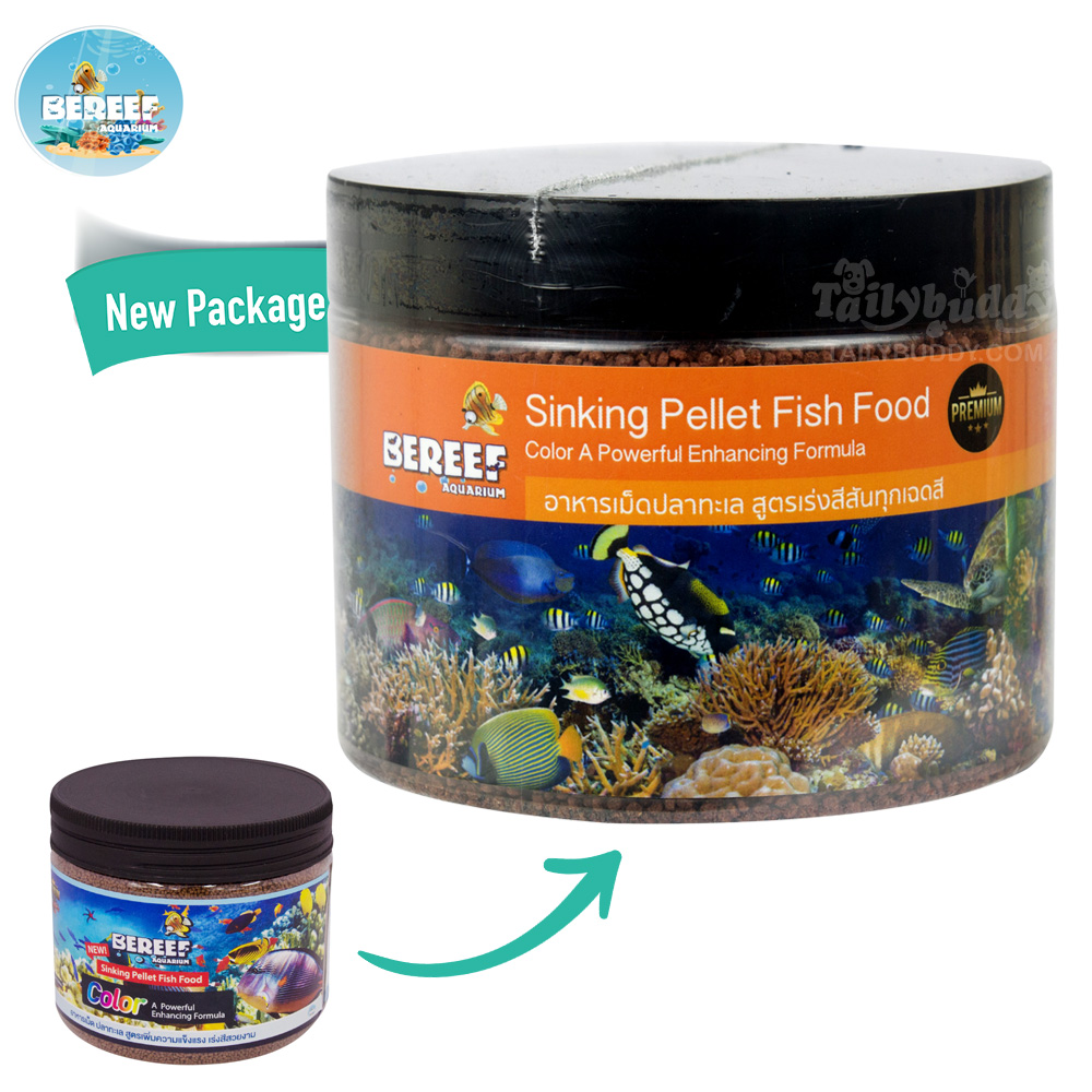 BEREEF Sinking Pellet บีรีฟ อาหารปลาทะเล สูตรเพิ่มความแข็งแรง เร่งสี เพิ่มภูมิต้านทาน Size S (125g,