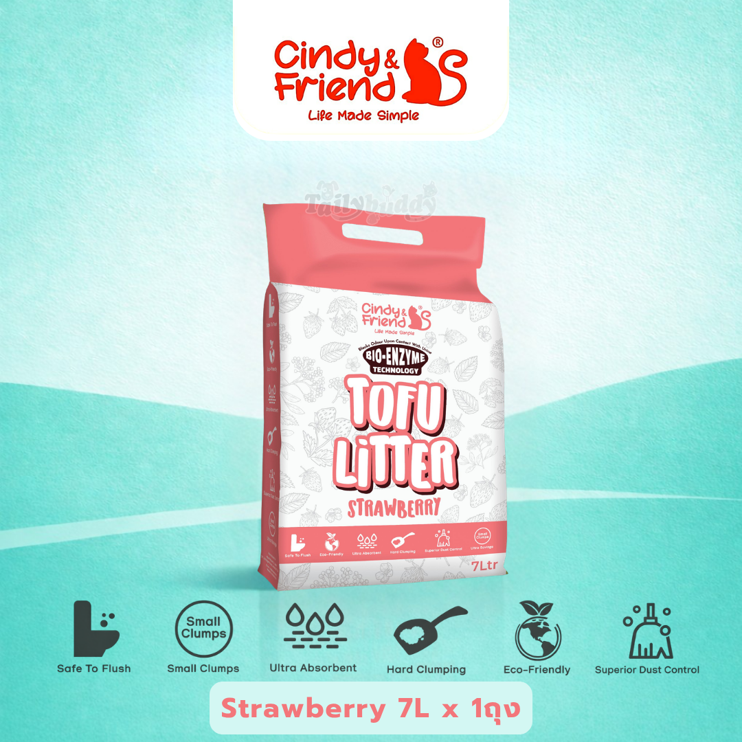 Cindy & Friends ทรายแมวเต้าหู้ กลิ่น สตรอเบอร์รี่ ธรรมชาติ 100% เก็บกลิ่นไว ไร้ฝุ่น ทิ้งชักโครกได้ (