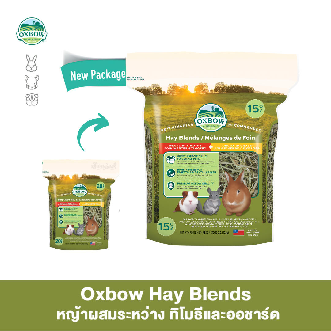 (ไซต์ใหม่) Oxbow Hay Blends - หญ้าผสมระหว่าง ทิโมธีและออชาร์ด เพื่อประโยชน์หลากหลาย (15 oz.)