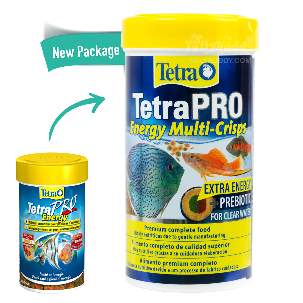 TETRAPro Energy Multi crisps เต็ดตร้าโปร เอ็นเนอร์จี้ มัลติ คริปส์อาหารชนิดแผ่นคริปส์ ที่ผ่านกระบวนผลิตโดยใช้ความร้อนต่ำ ทำให้ได้คุณค่าทางอาหารที่สูง สูตรเพิ่มพลังงานช่วยให้ปลามีชีวิตชีวามากขึ้นมีสัดส่วนของอาหารระหว่างโปรตีนและไขมันที่สมดุล ช่วยกระตุ้นให้ปลามีการเจริญเติบโตมีส่วนผสมของ BioActive ช่วยรักษาระบบภูมิคุ้มกันให้แข็งแรง และพรีไบโอติกเพื่อช่วยในการทำงานของระบบย่อยอาหารอาหารแผ่นคริปส์ ช่วยลดปริมาณเศษฝุ่นของอาหารที่อยู่ในตู้ปลา เต็ดตร้าโปรเอนเนอร์จี้ เป็นสารที่ช่วยในการย่อยอาหาร ช่วยลดของเสียจากปลา และยังเพิ่มวิตามิน โอเมก้า3 เข้าไปอีกด้วย ดังนั้นนอกจากจะดูน่ากินขึ้นแล้ว สรรพคุณต่างๆก็ยังมีเยอะเกิน ทำให้ชักจะไม่แน่ใจแล้วว่านี้คืออาหารปลา รึว่าวิตามินแผ่นกันแน่
