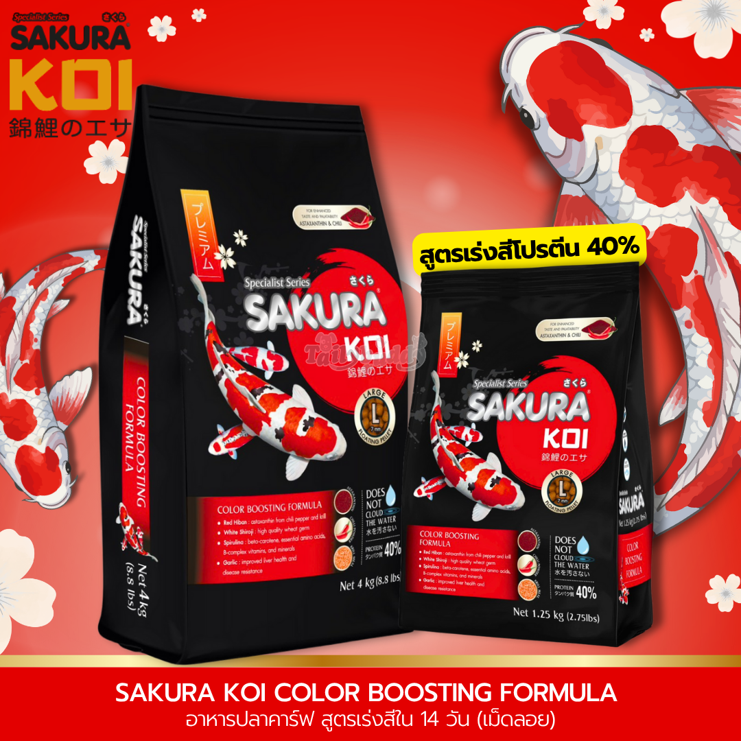SAKURA KOI COLOR BOOSTING FORMULA อาหารปลาคาร์ฟ สูตรเร่งสีใน 14 วัน (เม็ดลอย) (1.25kg, 4kg)