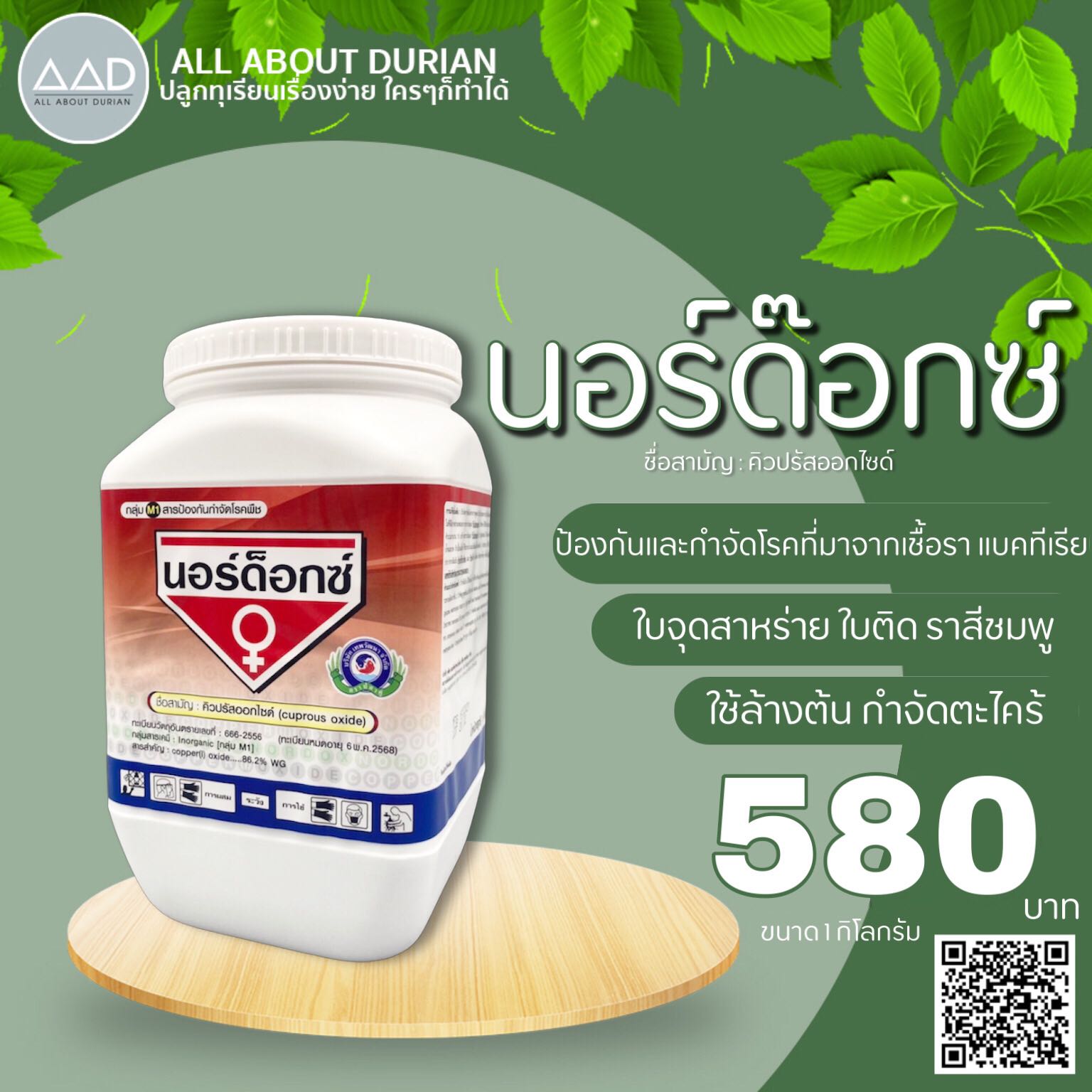 - อัตราการใช้ นอร์ด็อกซ์ แนะนำ 100 กรัม ต่อน้ำ 200 ลิตร