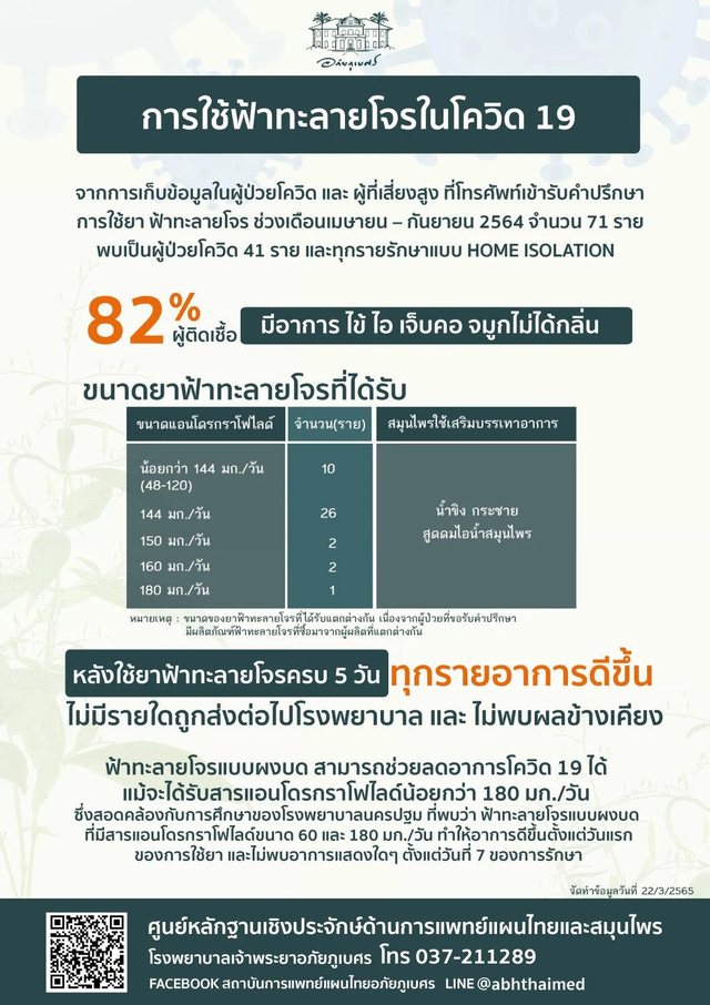 1. ห้ามใช้ในผู้ป่วยที่มีอาการแพ้ฟ้าทะลายโจร