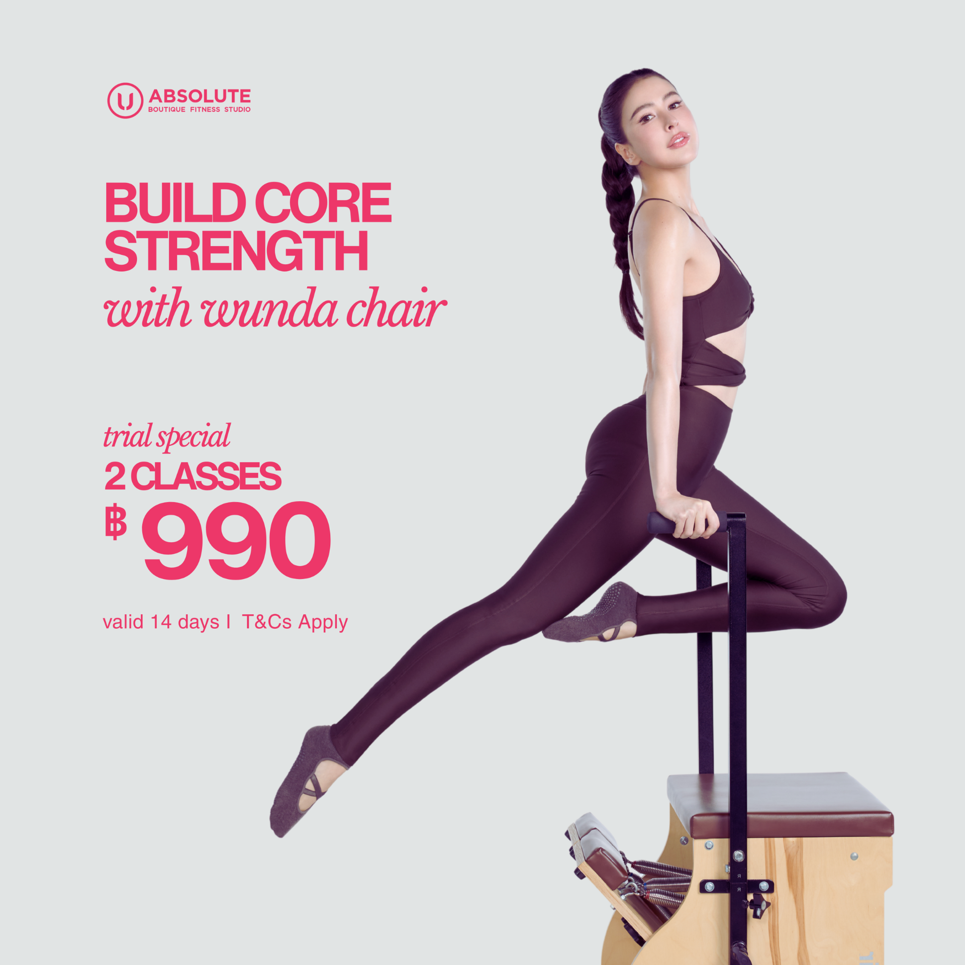 - สำหรับสมาชิกใหม่ที่ Absolute การฝึก Reformer และ Chair ครั้งแรก ต้องเข้าคลาส Foundation เพื่อเรียนปรับพื้นฐานก่อนฝึกคลาสจริง เป็นคลาสบังคับค่ะ (No Foundation No class นะคะ ! )