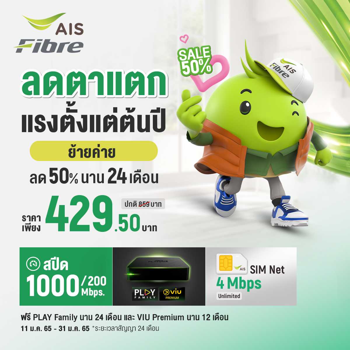 โปรย้ายค่ายเน็ตบ้านมา AIS fibre