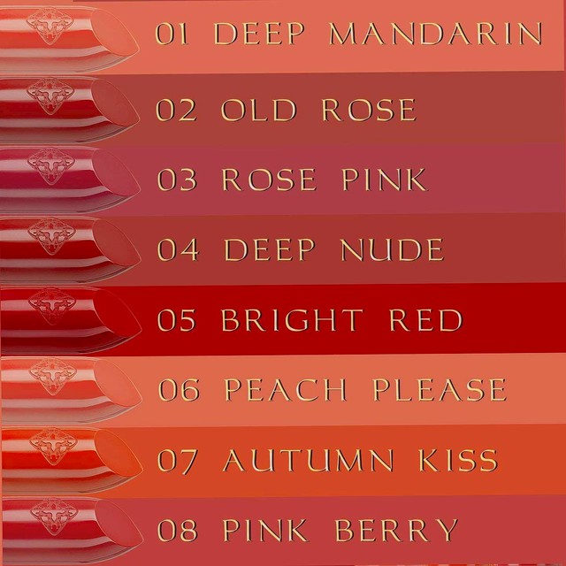 No.05 Bright Red No.06 Peach Please No.07 Autumn Kiss No.08 Pink Berry